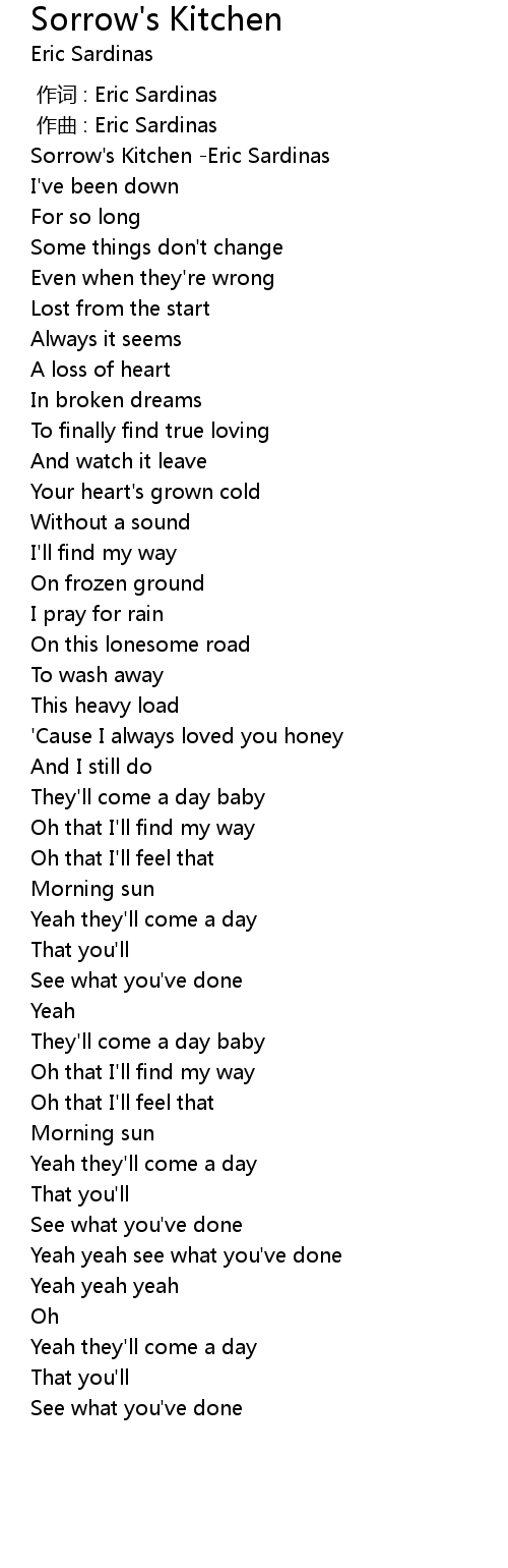 | [00:00.00] | Sorrow' s Kitchen Eric Sardinas |