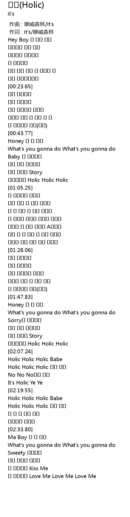 | [02:19.91] | Holic Holic Holic Babe |