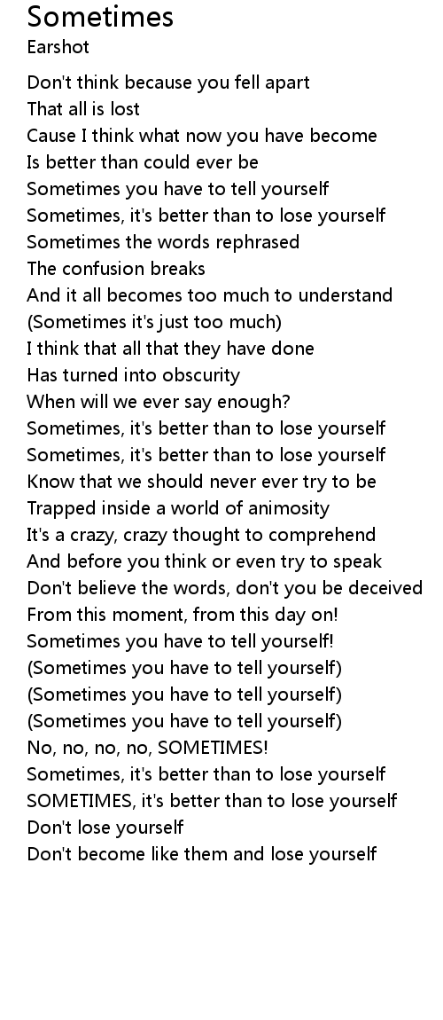 SOMETIMES, it's better than to lose yourself |