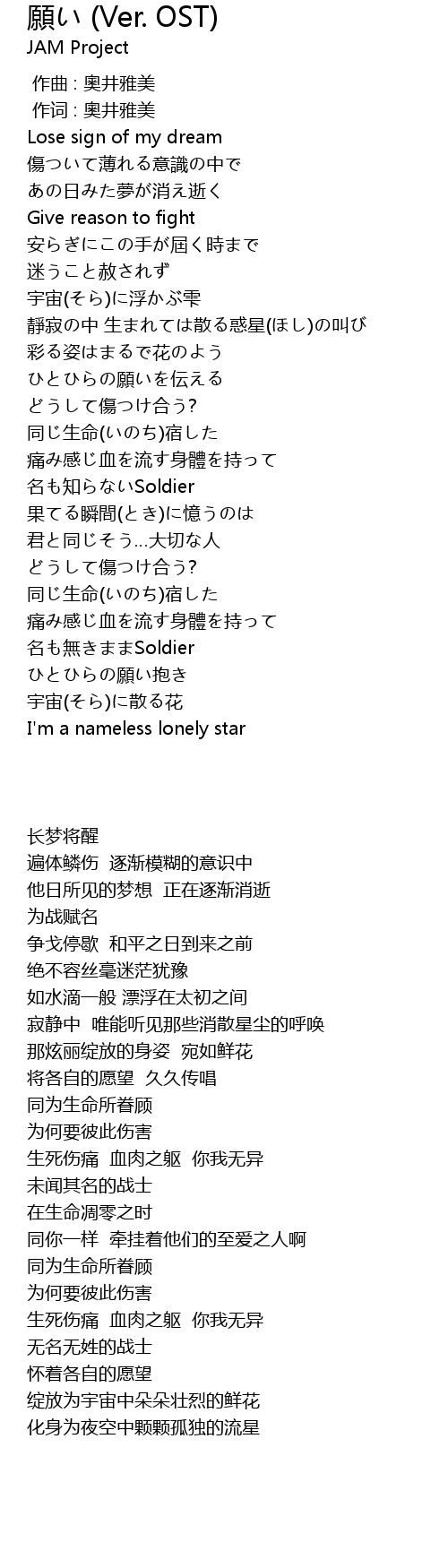 | Song | 願い (Ver. OST) |