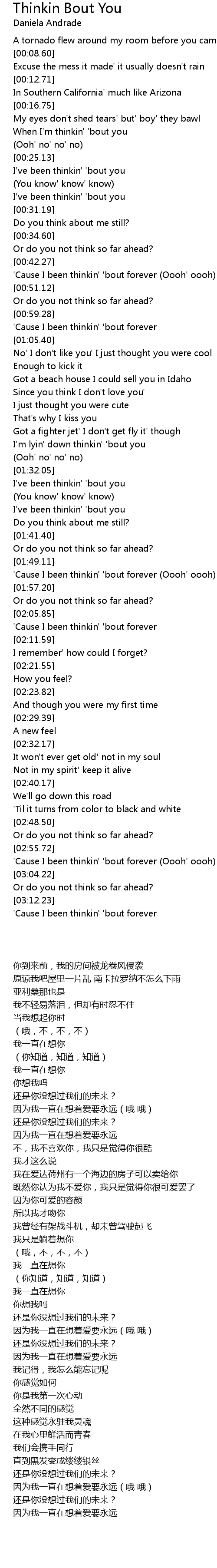 I'm lyin' down thinkin' 'bout you |