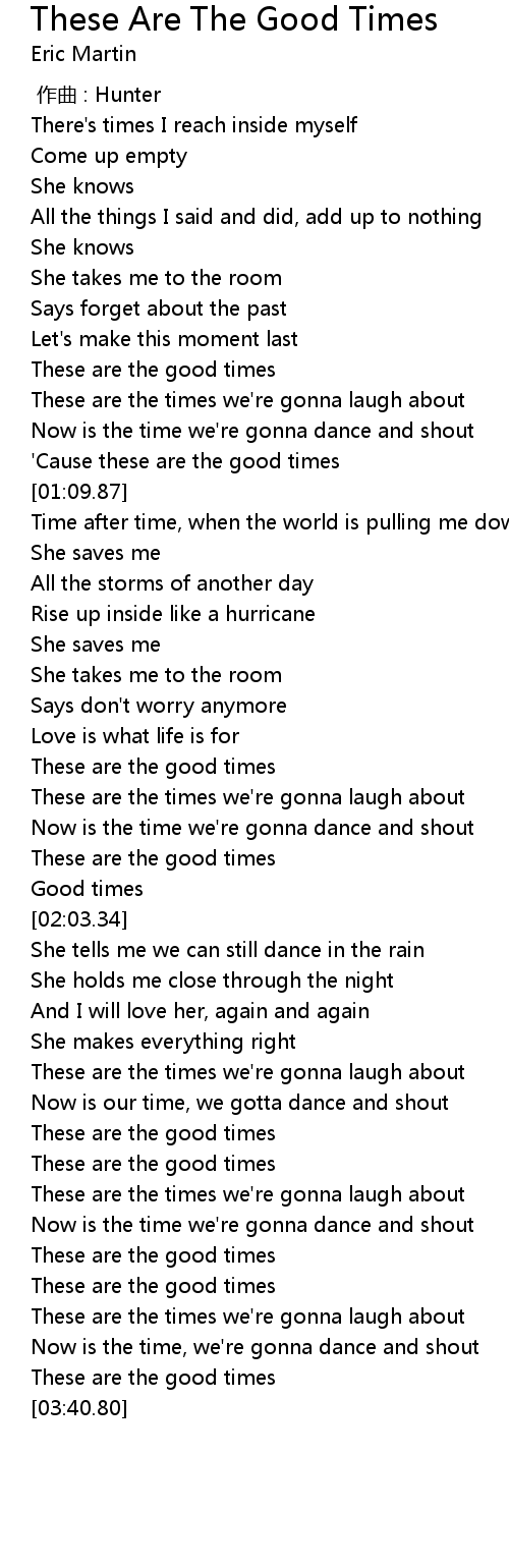 | [01:06.06] | ' Cause these are the good times |
