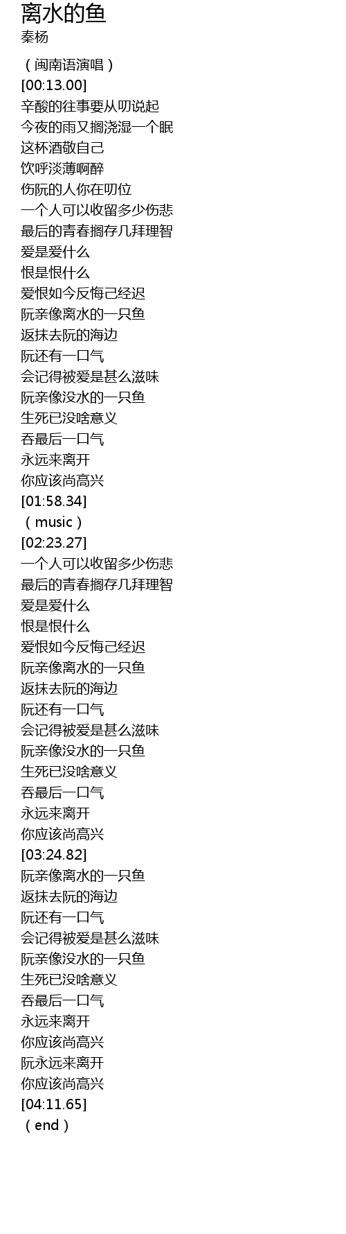 | [03:31.82] | 阮亲像离水的一只鱼 |