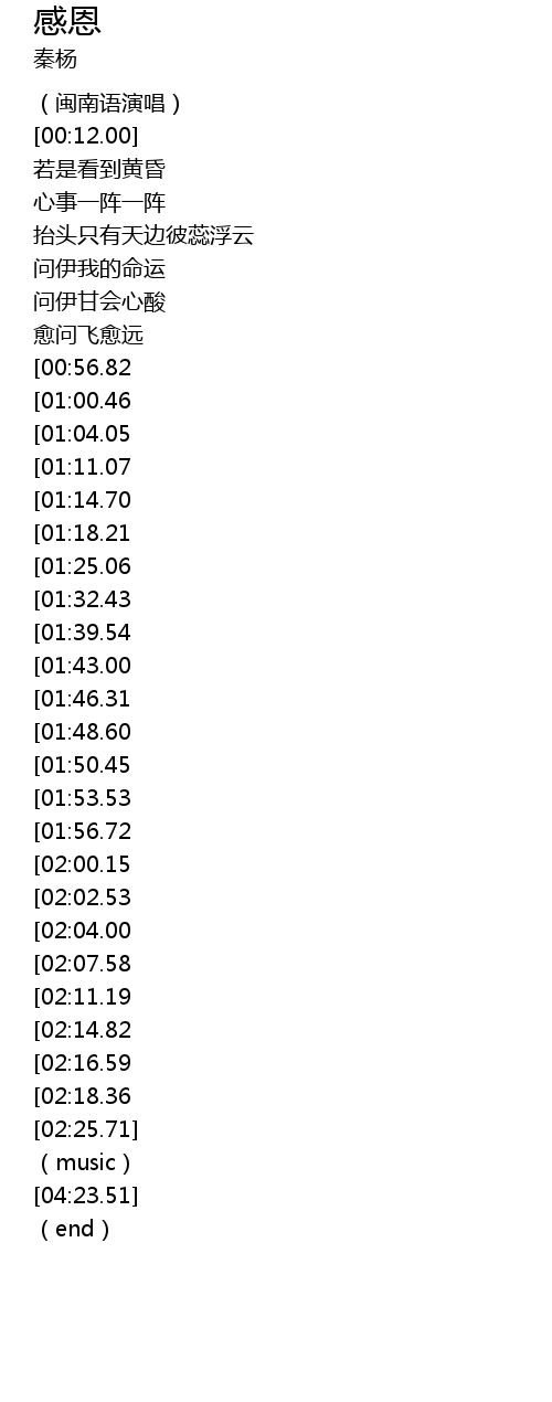 | [00:03.00] | mǐn nán yǔ yǎn chàng |