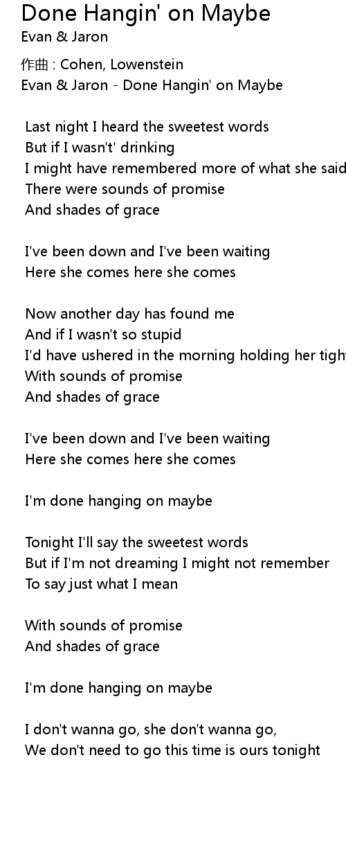 | Evan & Jaron - Done Hangin' on Maybe | |
