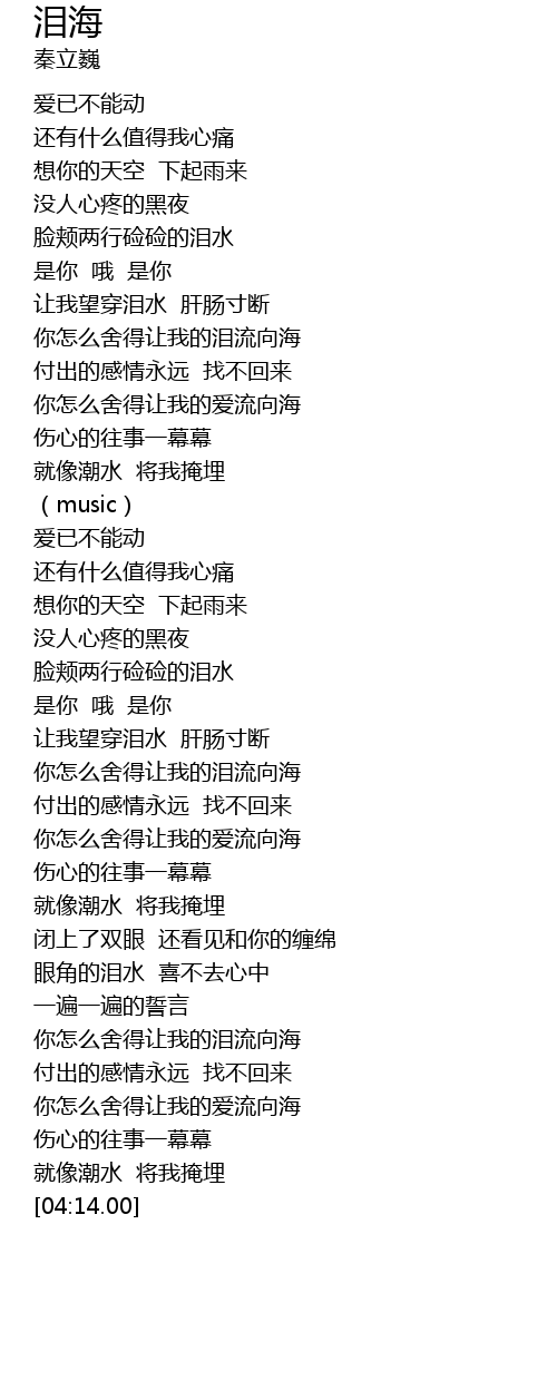 | [03:37.00] | 你怎么舍得让我的泪流向海 |