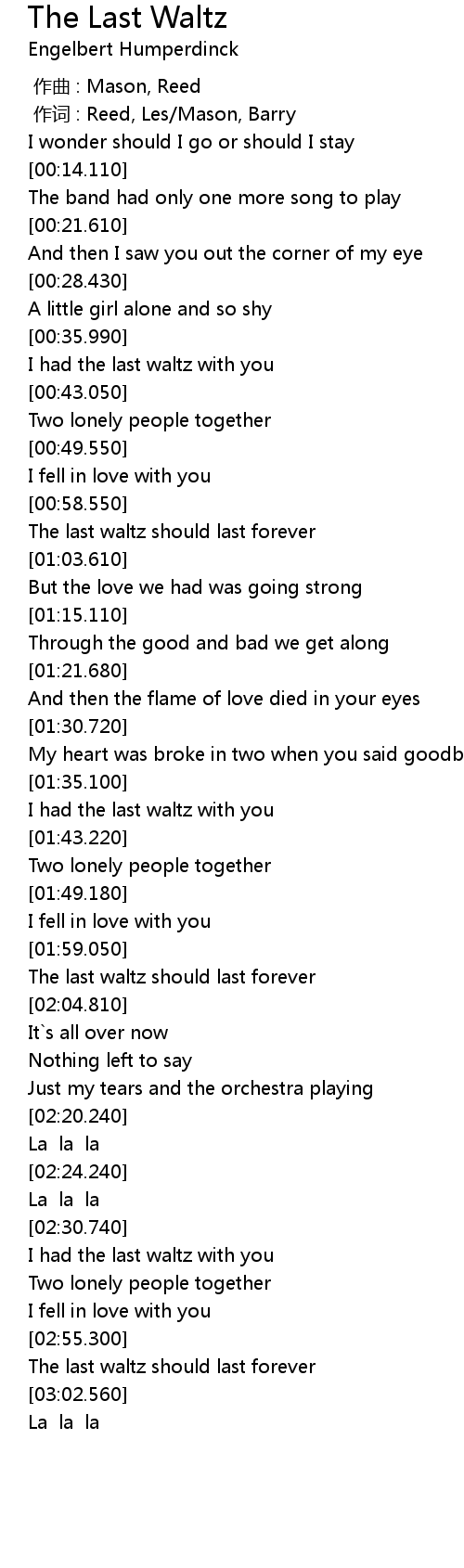 | [02:57.680] | The last waltz should last forever |
