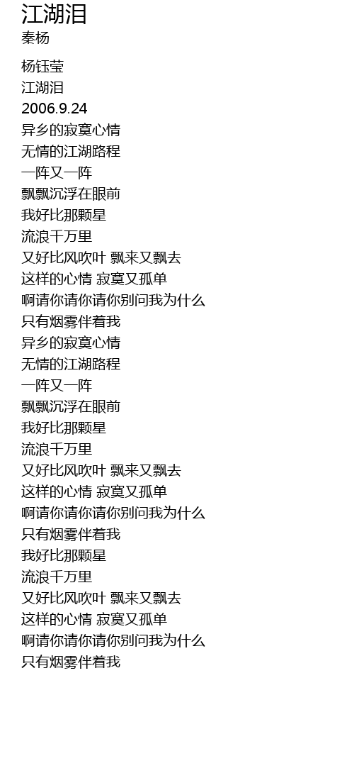 | [02:07.37] | liú làng qiān wàn lǐ |