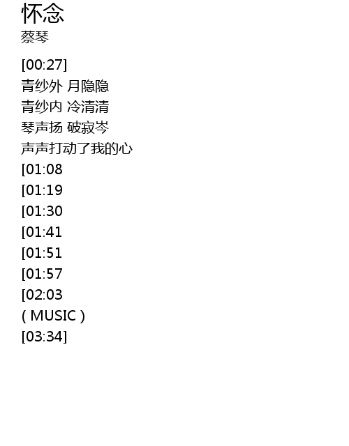 | [00:28] | 青纱外 月隐隐 |
