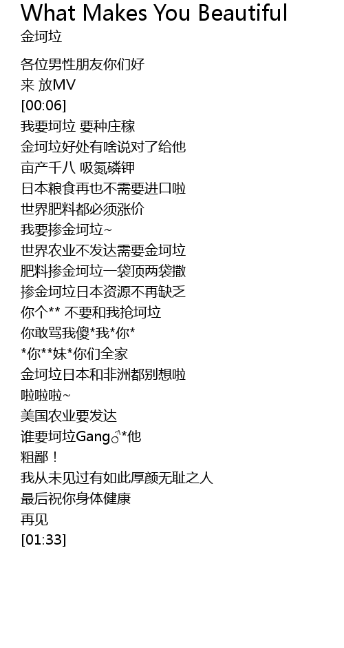 | [01:03] | jīn kē lā rì běn hé fēi zhōu dōu bié xiǎng la |