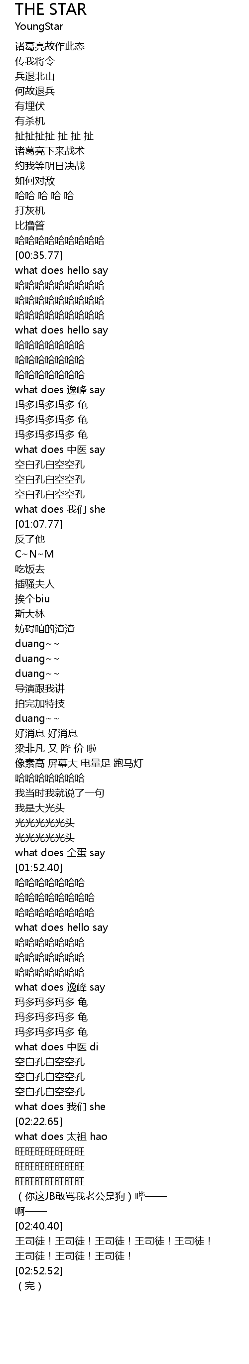 | [02:41.44] | 王司徒!王司徒!王司徒!王司徒!王司徒! |