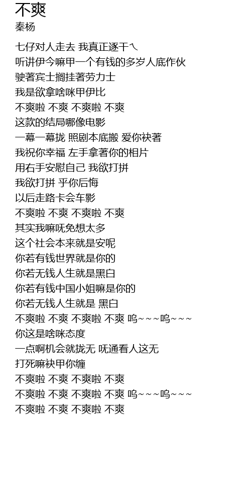 | [02:54.81] | 不爽啦 不爽 不爽啦 不爽 |