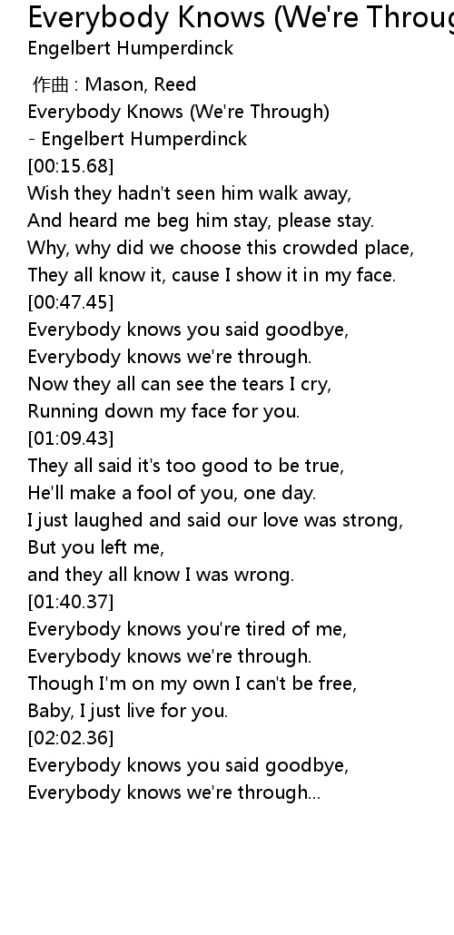 | [01:43.51] | Everybody knows you' re tired of me, |