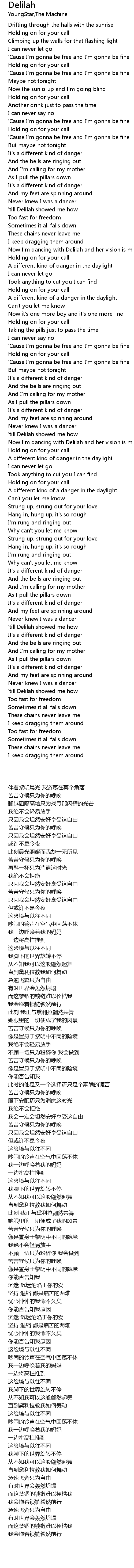 Now I'm dancing with Delilah and her vision is mine |