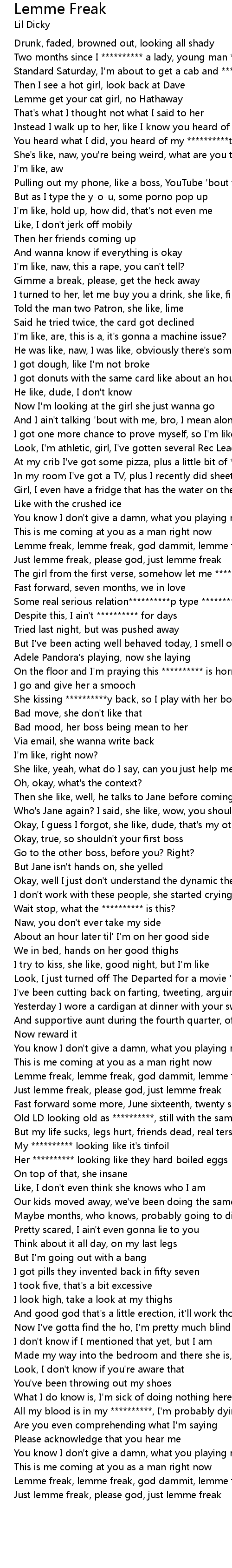 Lemme freak, lemme freak, god dammit, lemme freak |
