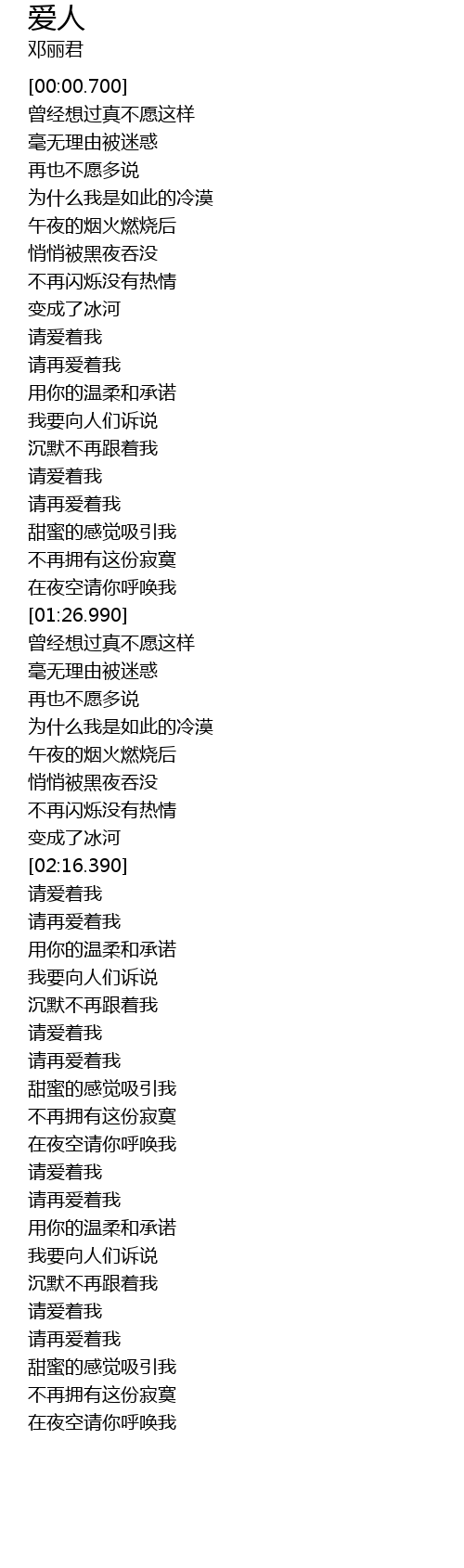 | [00:55.980] | qǐng zài ài zhe wǒ |