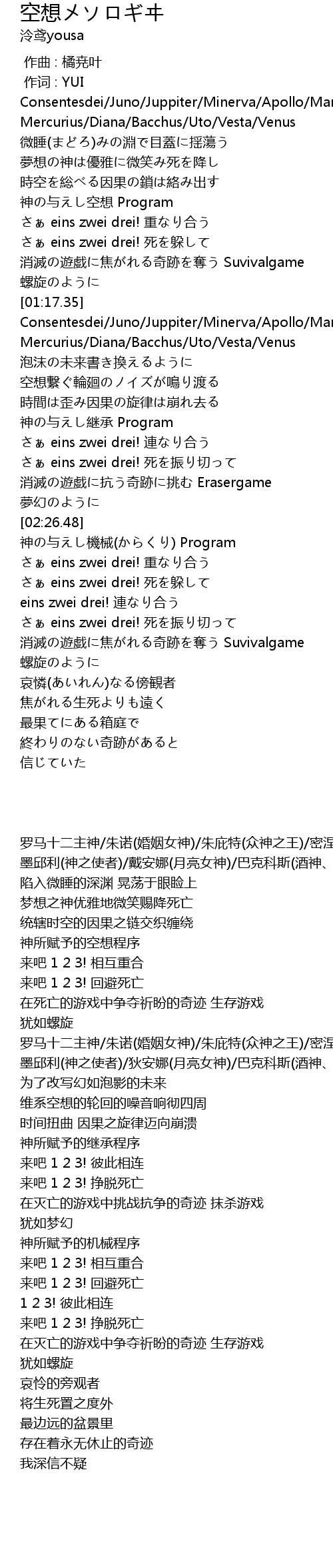 | [01:30.09] | Mercurius/Diana/Bacchus/Uto/Vesta/Venus |
