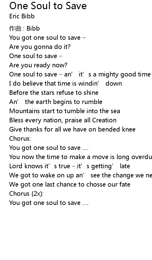 | You got one soul to save – | |