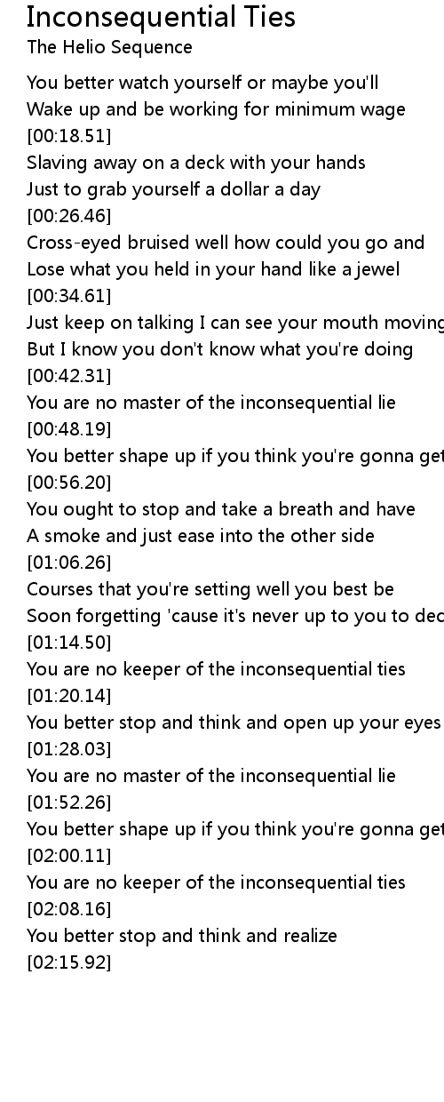 You are no keeper of the inconsequential ties |
