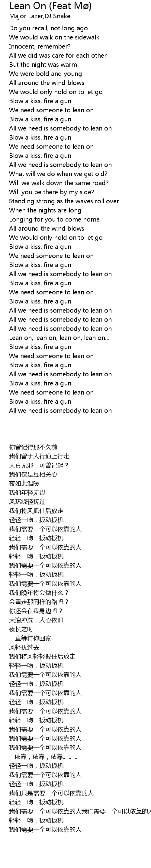 All we need is somebody to lean on |