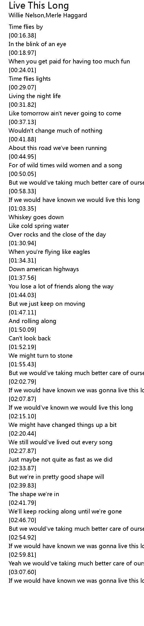 If we would have known we was gonna live this long |
