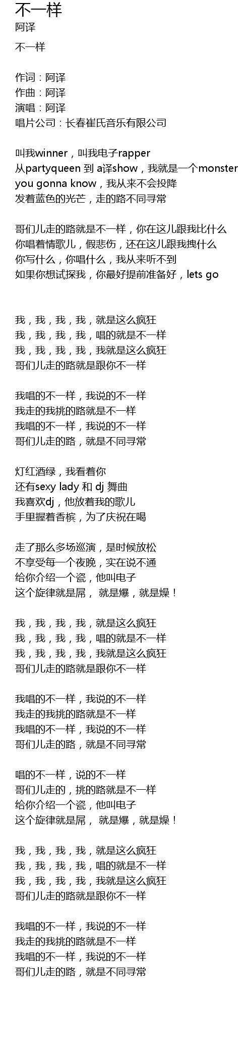 | wǒ, wǒ, wǒ, wǒ, chàng de jiù shì bù yí yàng | |