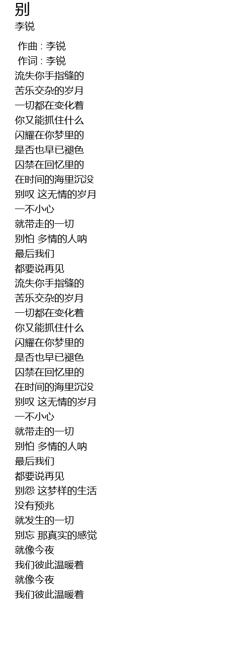 | [00:01.00] | 作词 : 李锐 |