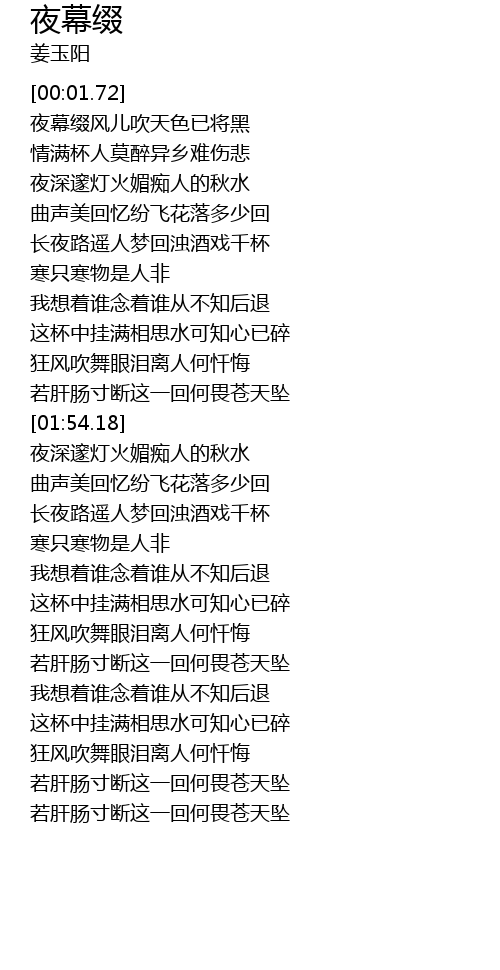 | [00:48.27] | 夜深邃灯火媚痴人的秋水 |