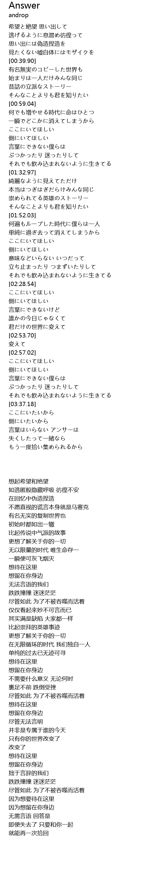 | [03:47.38] | 言葉はいらない アンサーは |