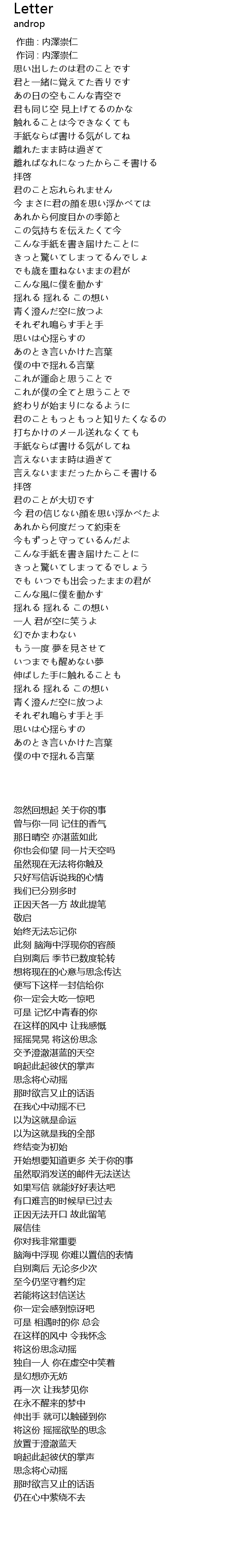 | [00:40.95] | 手紙ならば書ける気がしてね |