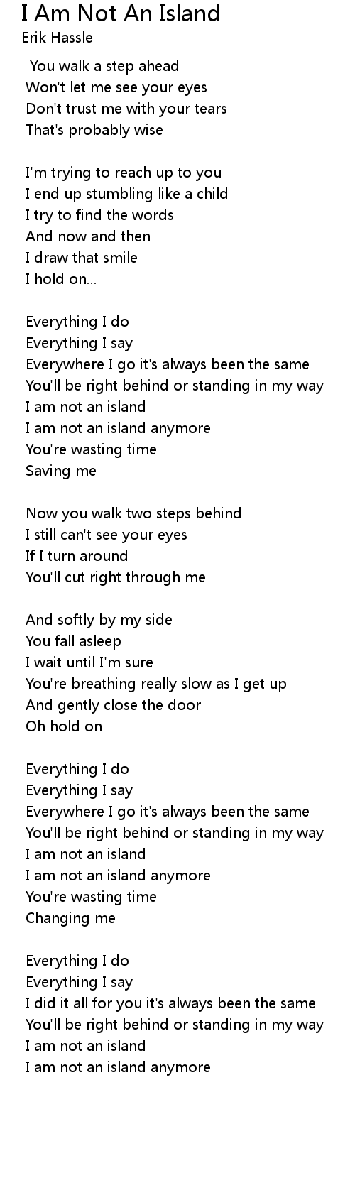 I am not an island anymore |