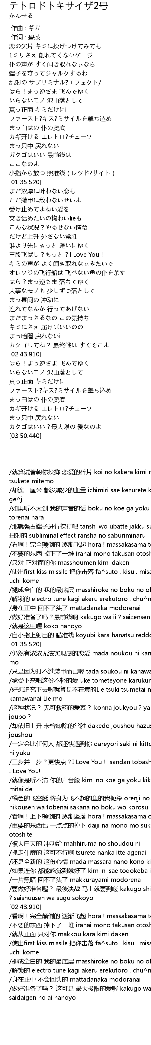 | [03:21.960] | ファースト?キス?ミサイルを撃ち込め |