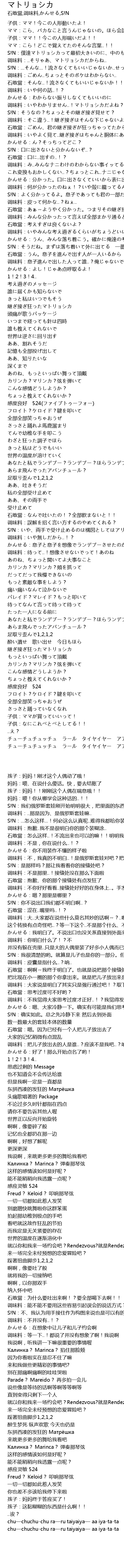 | [02:33.30] | S!N:そうだね。まずは落ち着いて外に出てる 一番大きいマトリョシカ本体の数を数えよっか |