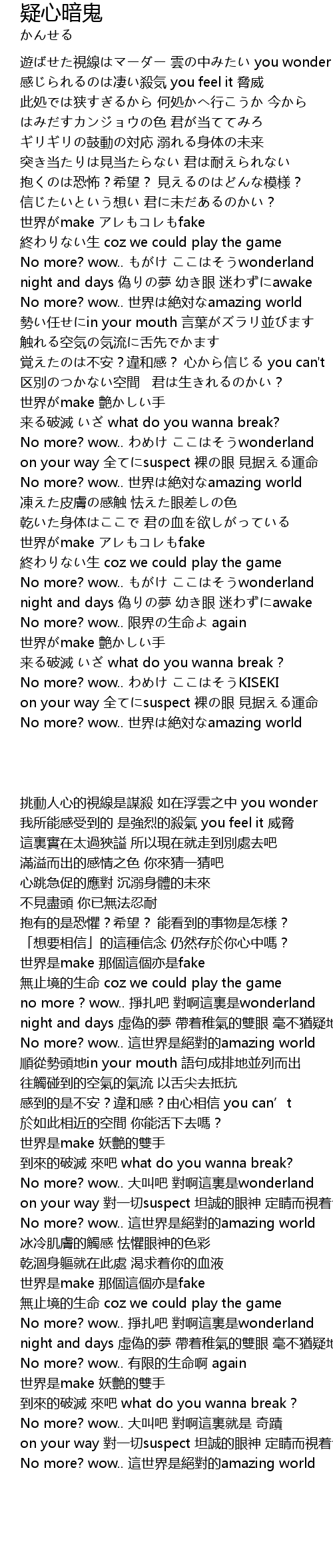 | [01:37.36] | No more? wow.. 世界は絶対なamazing world |