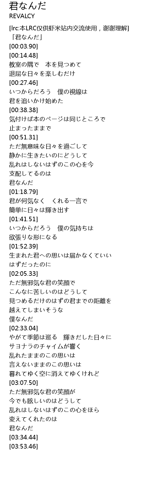| [03:31.17] | 君なんだ |
