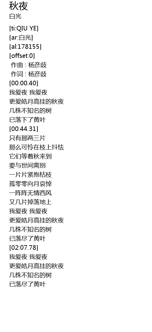 | [02:46.34] | 已落尽了黄叶 |