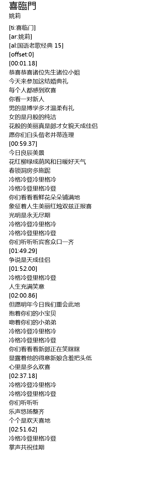 | [01:38.02] | lěng gé lěng dēng lěng lǐ gé lěng |