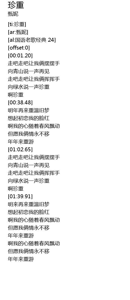| [00:39.70] | míng nián zài lái chóng wēn jiù mèng |