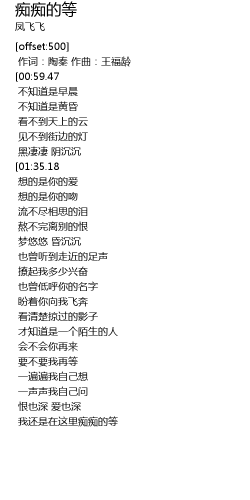 | [00:50.89][01:35.18] | 你让我在这里痴痴的等 |