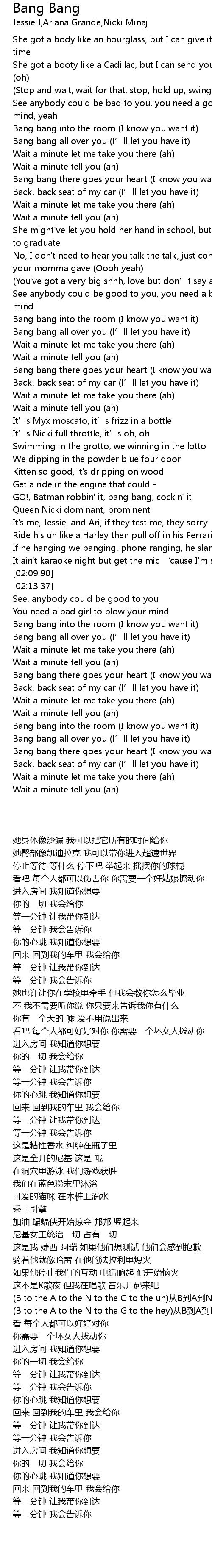 | [02:24.38] | Bang bang into the room I know you want it |