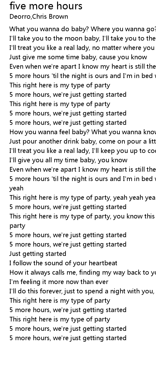 5 more hours 'til the night is ours and I'm in bed with you, this is yeah |