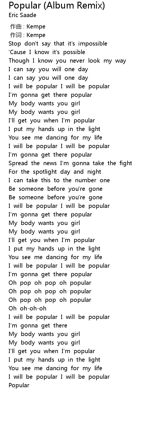 | Song | Popular (Album Remix) |