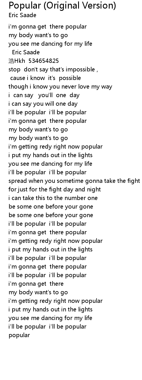 | Song | Popular (Original Version) |