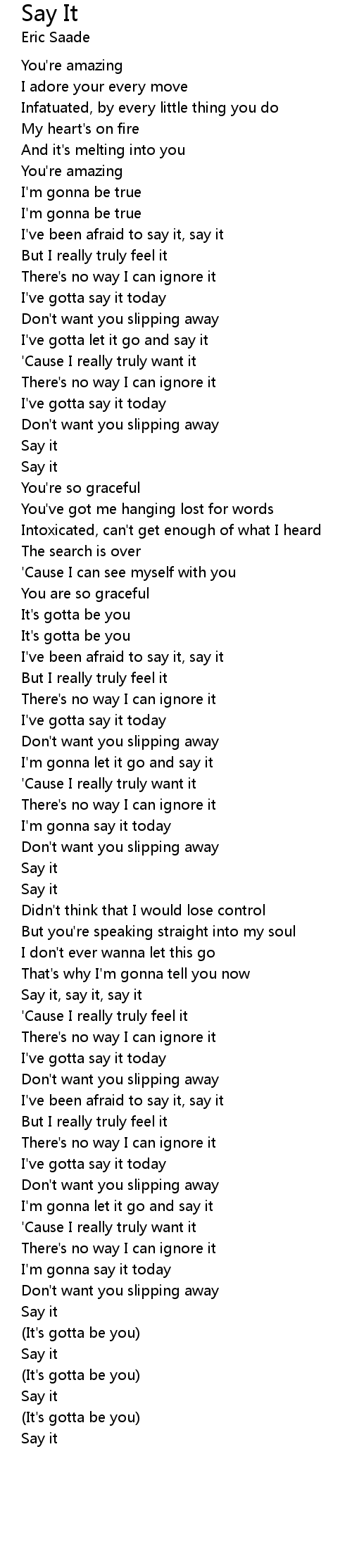 I've gotta let it go and say it |