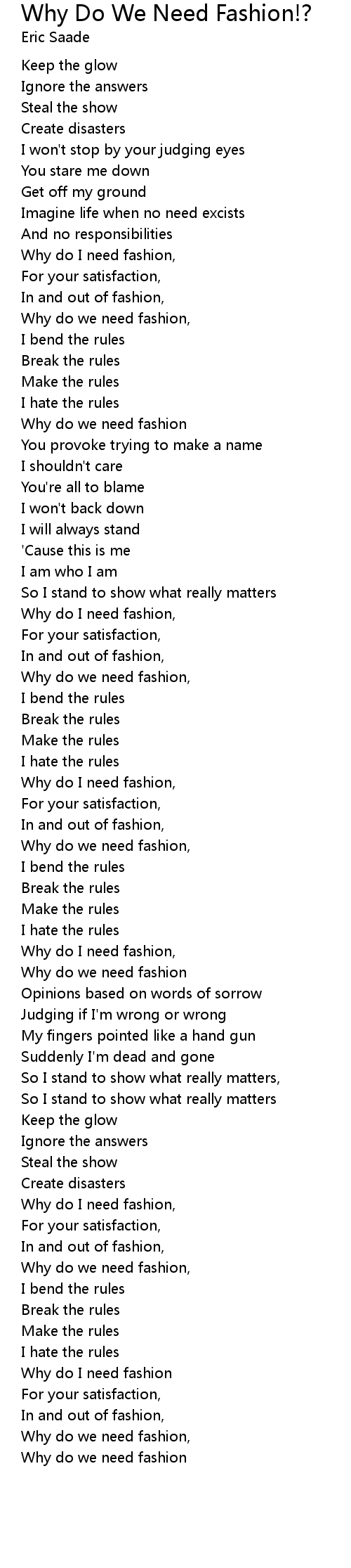 Why do I need fashion, |