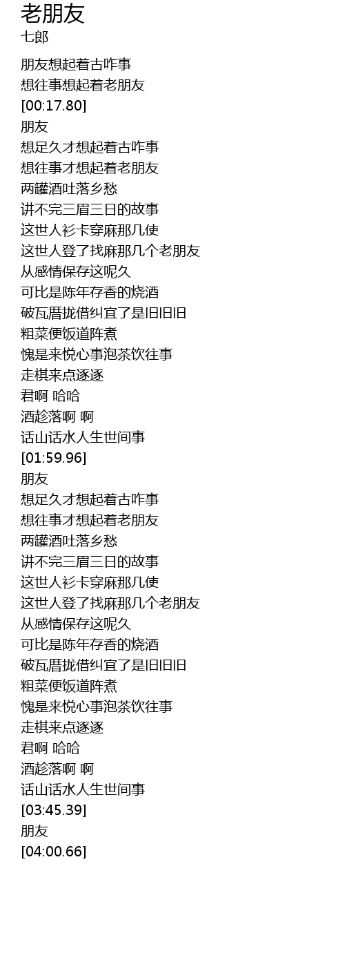 | [00:06.60] | péng yǒu xiǎng qǐ zhe gǔ zǎ shì |