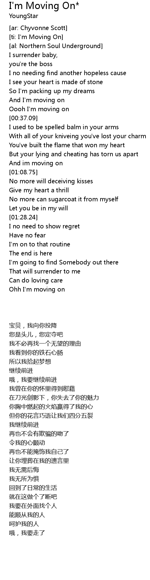 [ti: I'm Moving On] |