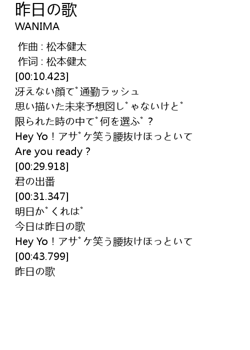 | [00:45.726] | 昨日の歌 |
