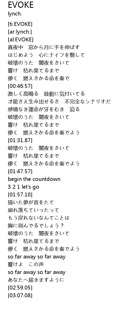| [01:32.20] | 破壊のうた 闇夜をさいて |