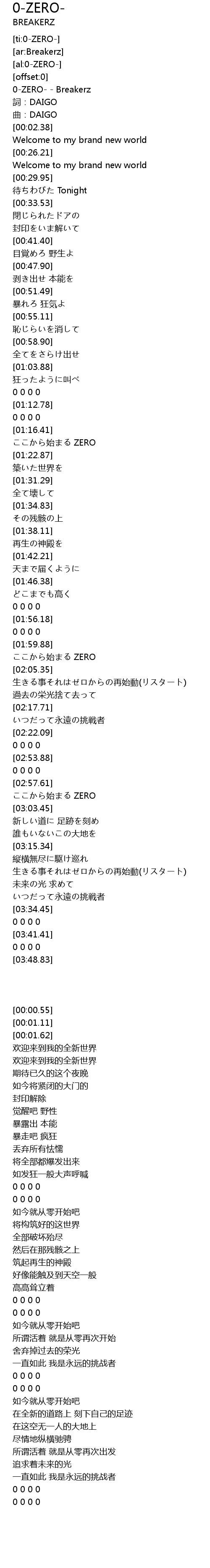| [00:00.55] | 0-ZERO- - Breakerz |